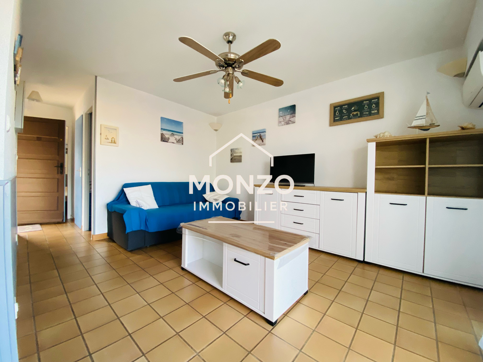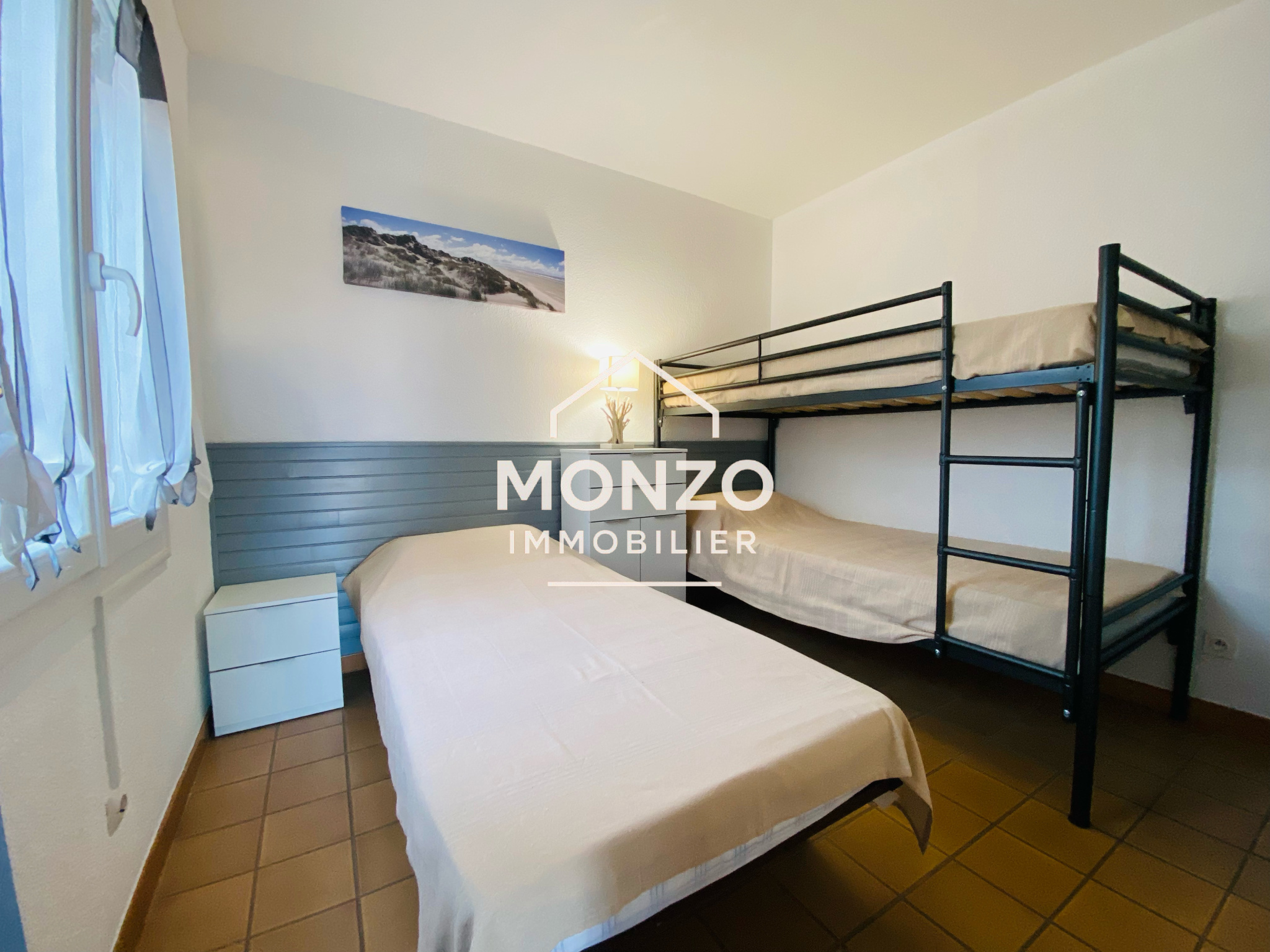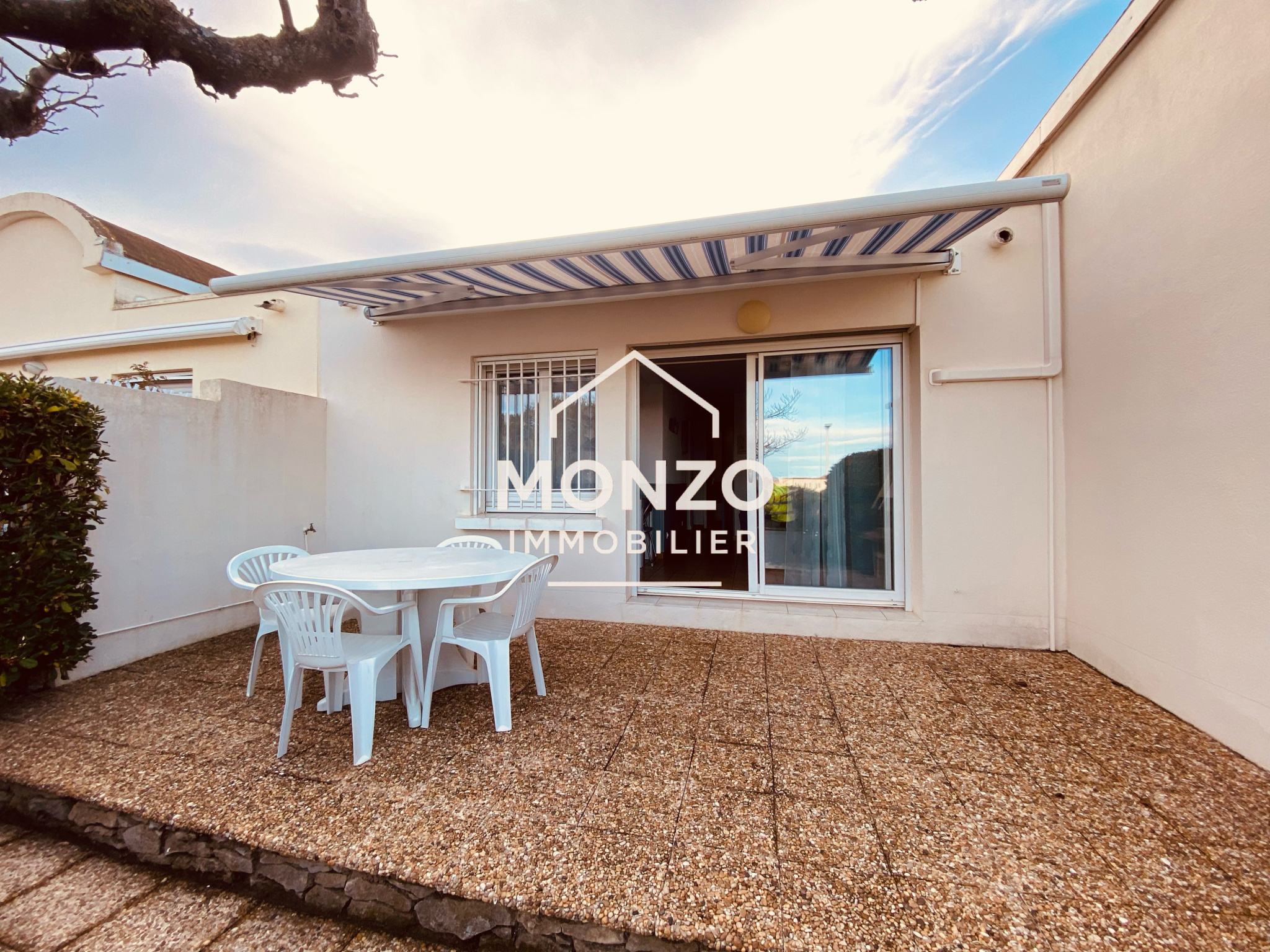 Gruissan (11430)Ce pavillon T3 de 42m², traversant dispose d'un jardin arboré, une terrasse avec store banne électrique, une cuisine aménagée et équipée, un salon/séjour, une salle de bains, un WC séparé, deux chambres avec placards, un cellier indépendant de 5 m² pouvant y acceillir des vélos et une terrasse à l'arrière de 15m².