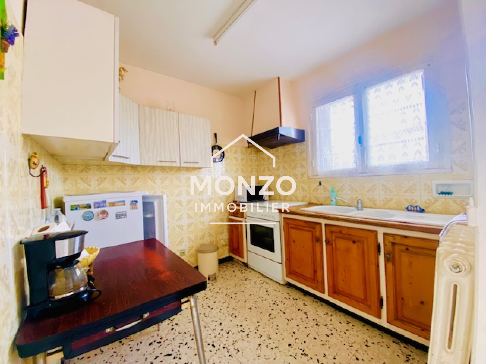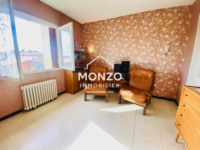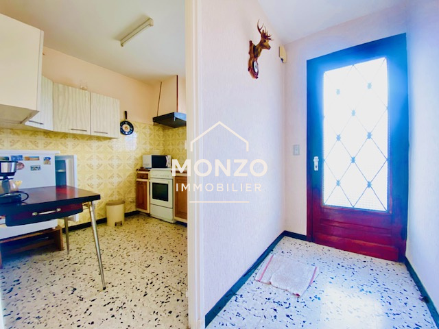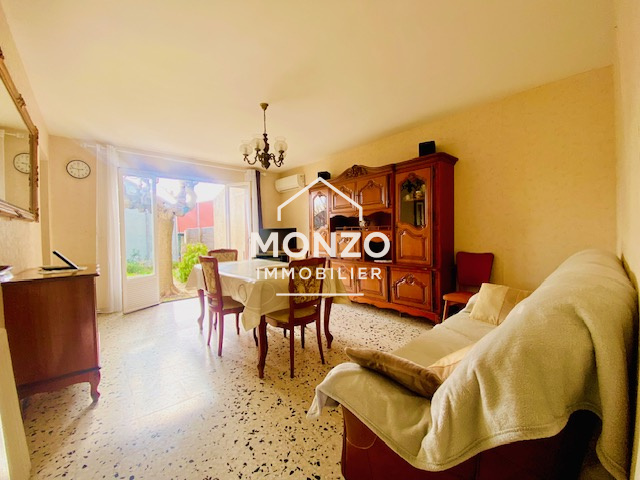 Narbonne (11100)Dans un quartier prisé, proche des commerces et des écoles, maison en deux faces de type T4. Elle se compose en rez de chaussée d une cuisine indépendante, un salon/séjour très lumineux donnant sur un grand jardin sans vis à vis . A l'étage, 3 grandes chambres avec placards, une salle d'eau et un WC. Grand garage, un puit, climatisation, exposition sud.