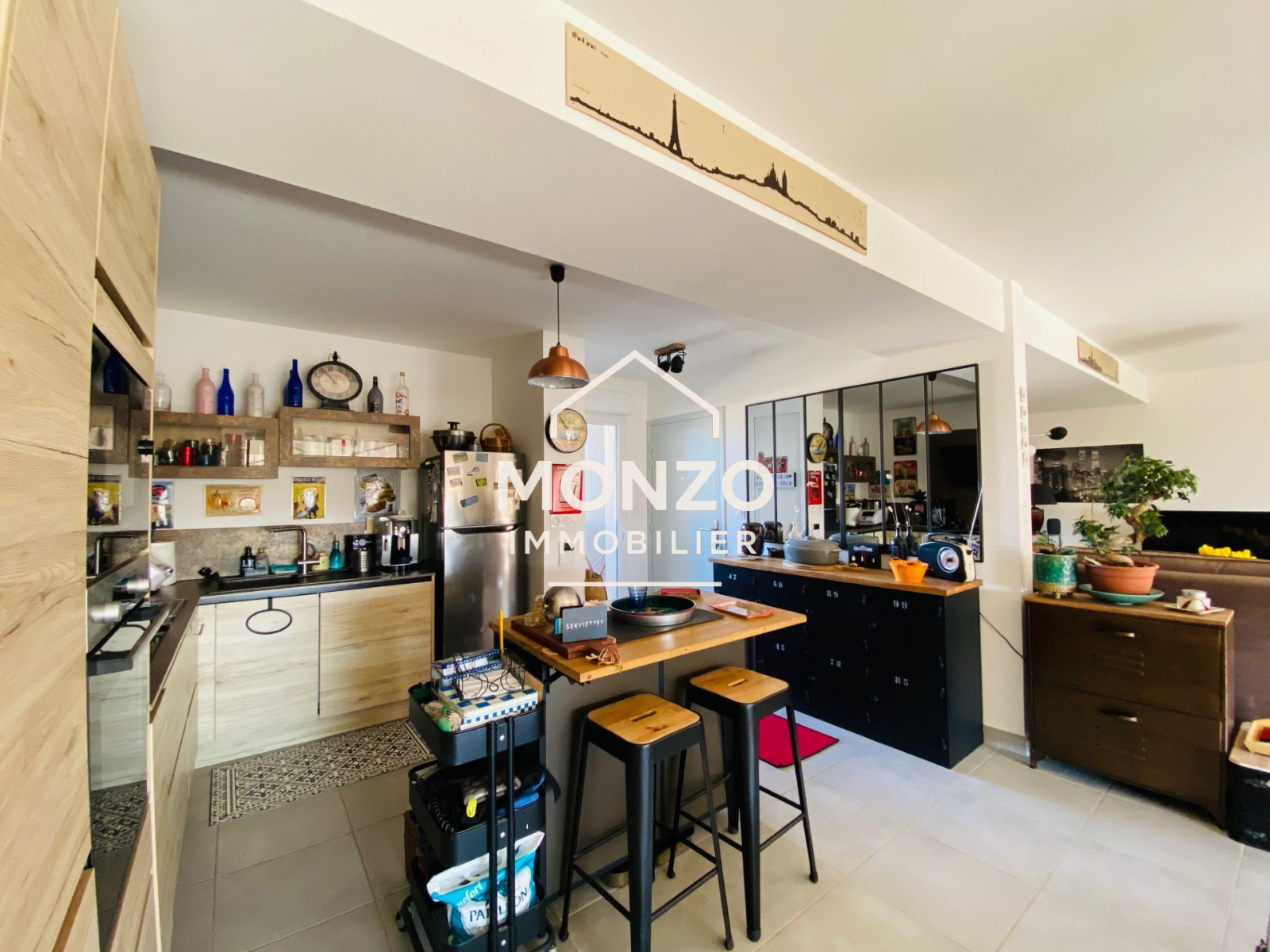 Ce bien comprend une entrée, une cuisine americaine aménagée et équipée donnant sur un vaste salon/séjour de 49m², deux chambres avec placards, une salle d'eau, un WC séparé, et une suite parentale avec salle d'eau et WC.