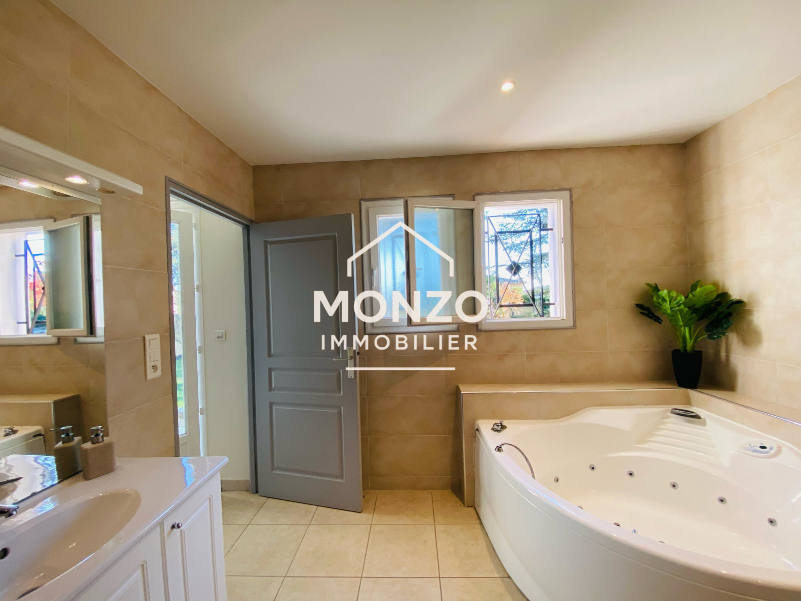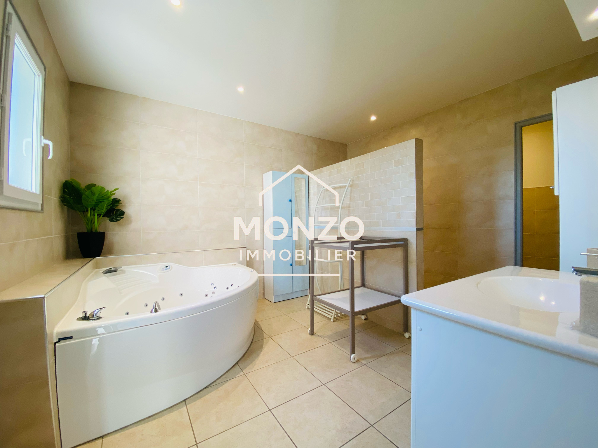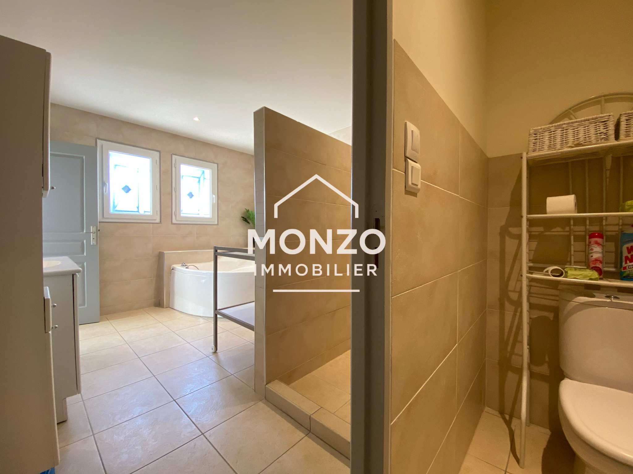 D'autre part, l'entrée donne sur une partie nuit avec 4 chambres, dont une suite parentale et sa salle de bains avec baignoire balnéo, douche à l’italienne/WC, et une Salle d’eau supplémentaire avec douche à l’italienne et WC.
