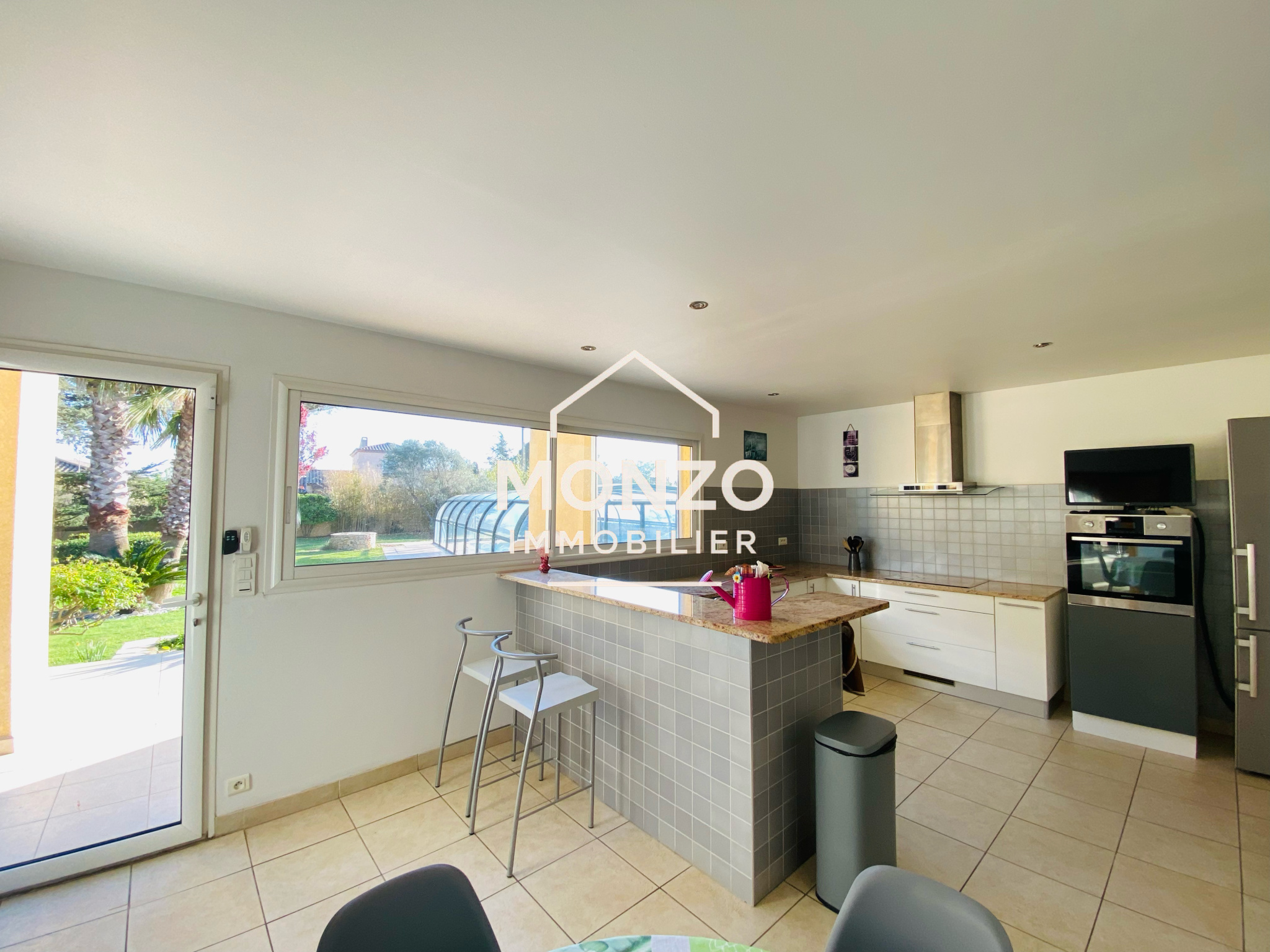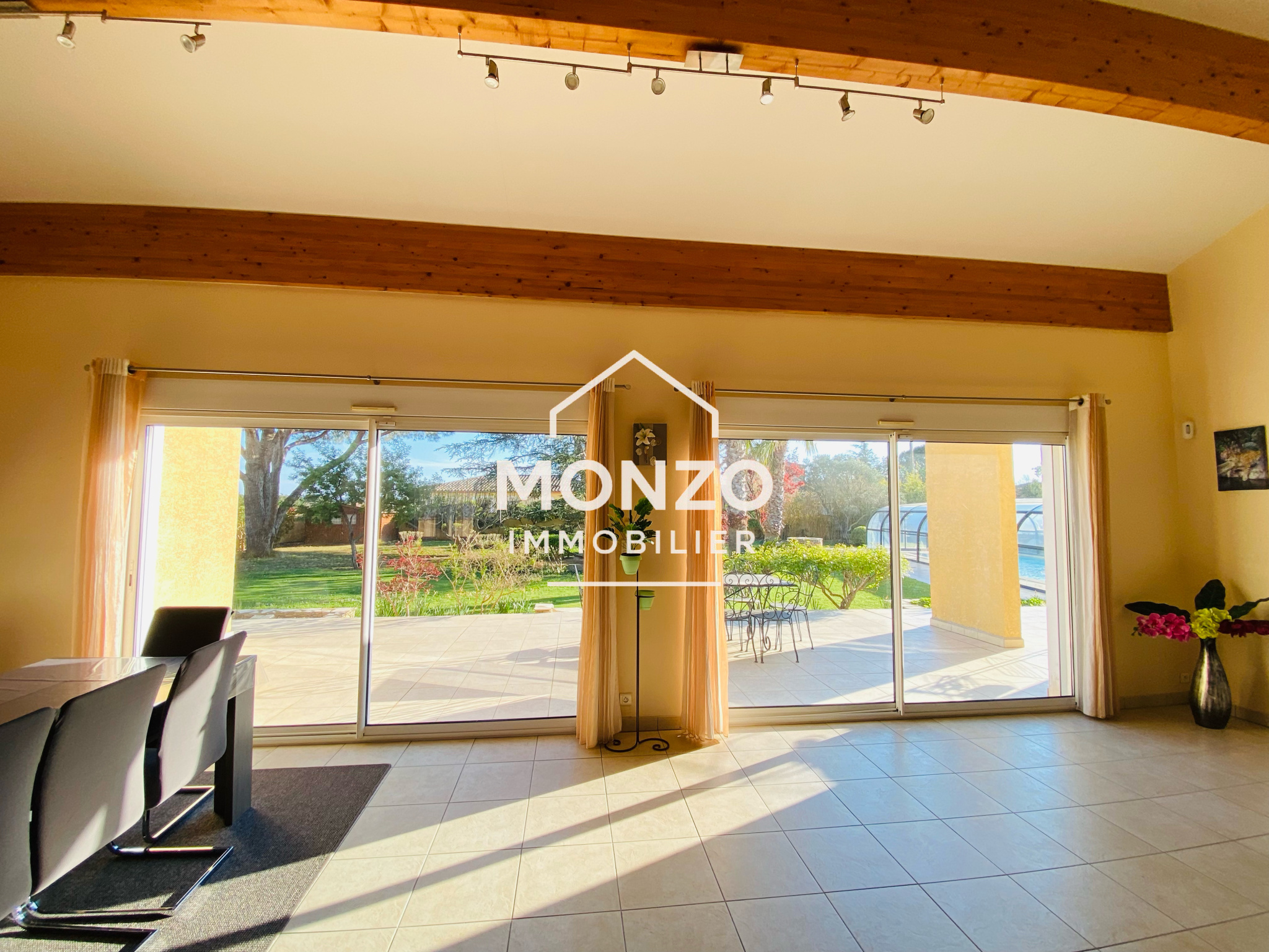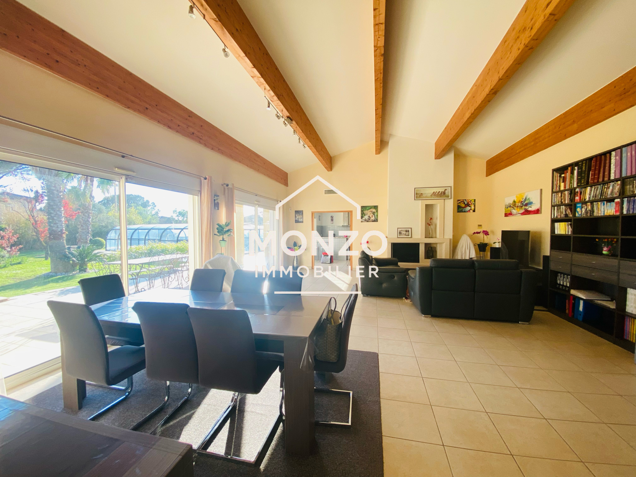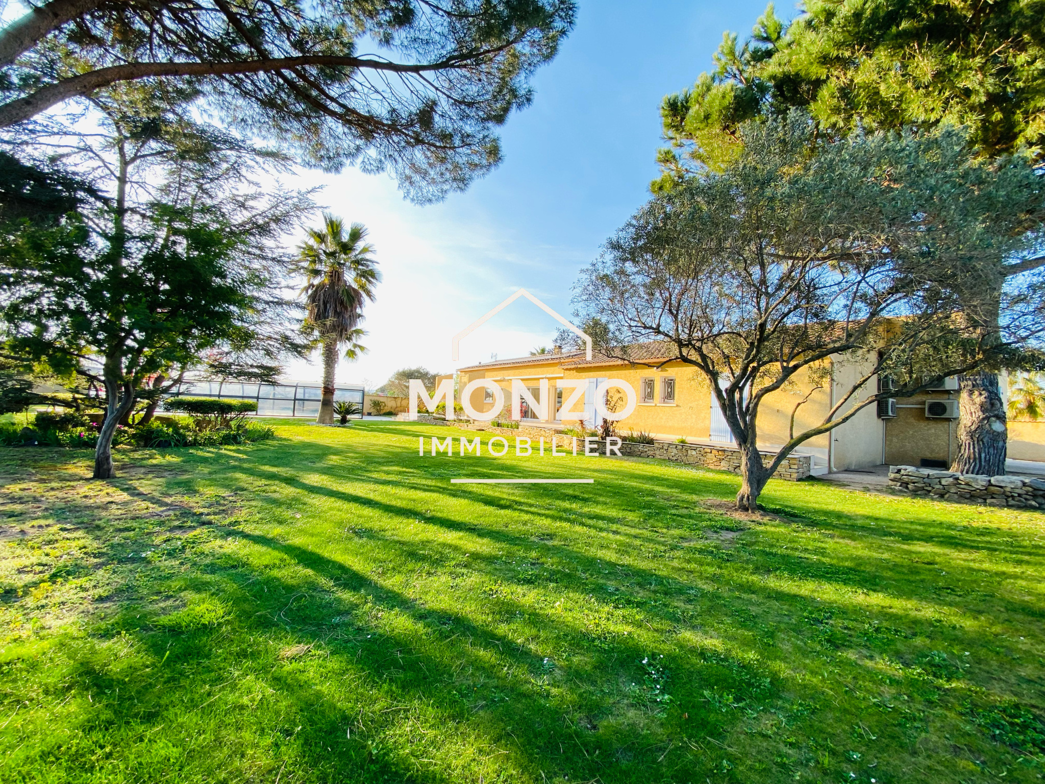 Saint-Nazaire-d'Aude (11120)Dans un environnement exceptionnellement calme, sans vis-à-vis et sans nuisance, découvrez cette belle maison de plain-pied offrant un cadre de vie rare, implantée sur un magnifique parc arboré, elle séduit immédiatement par ses volumes, sa luminosité et ses prestations de qualité.